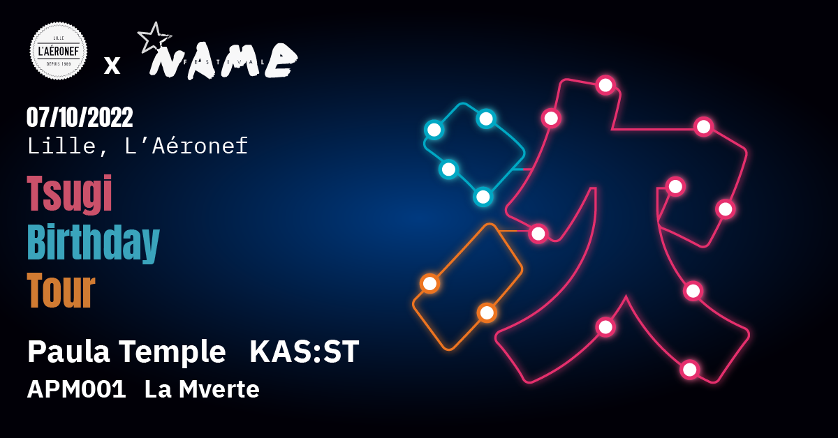Parmi son long périple musical, le Tsugi Birthday Tour a donné rendez-vous aux amateurs de bonne musique le 7 octobre prochain à Lille. Le NAME, l’Aéronef et Tsugi s’associent afin d’accueillir Paula Temple, KAS:ST et APM001 pour une soirée qui s’annonce sportive.