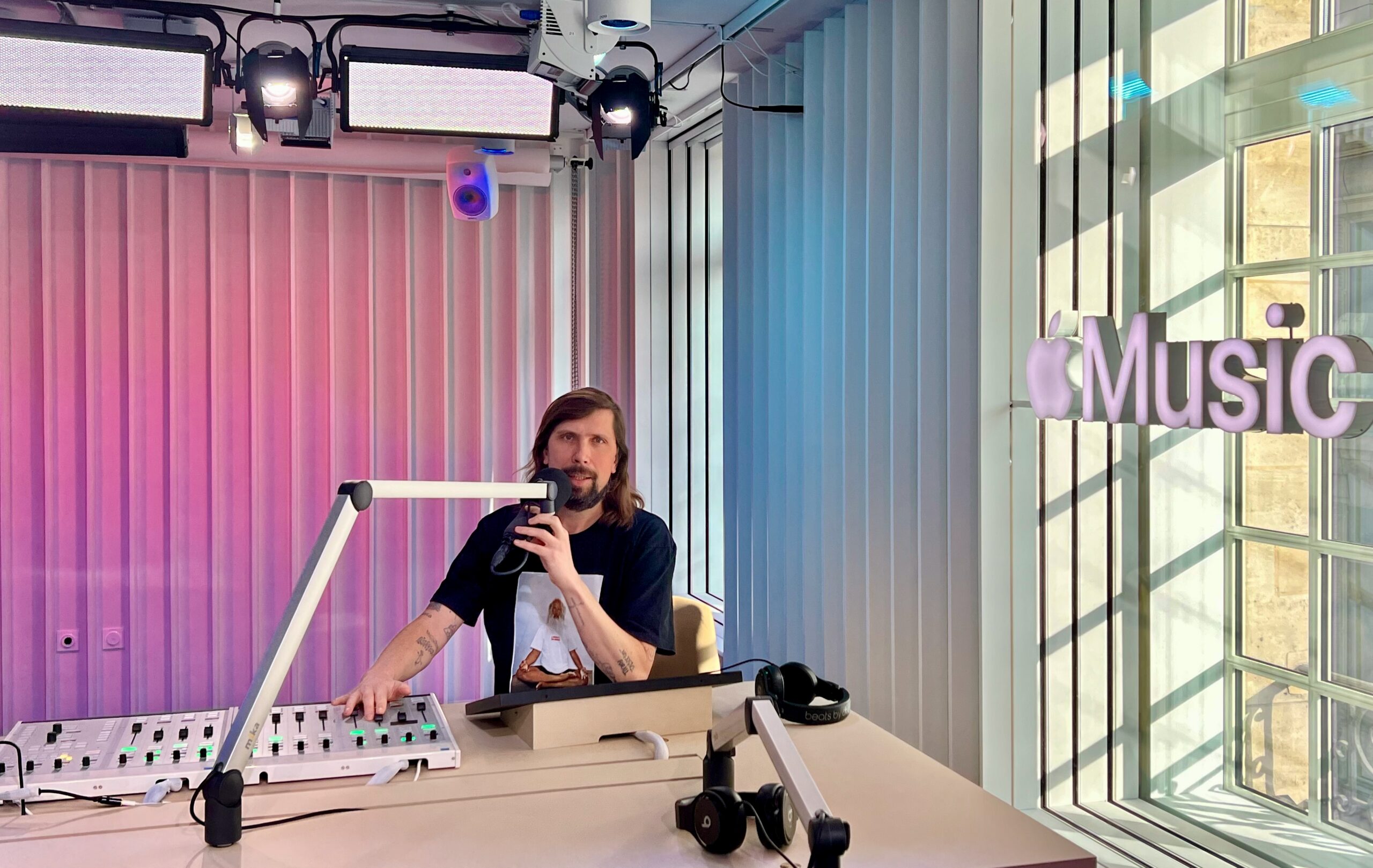Il est ici question d’alignement des lunes. Lorsque Apple Music ouvre enfin son studio parisien, moi je rêvais déjà d’un show radio depuis longtemps… J’ai tout de suite accepté l’invitation de venir inaugurer le studio. J’ai grandi dans les couloirs de RTL, rue Bayard. La radio m’a toujours captivé, intrigué, bercé. La magie du son qui se diffuse, qui s’incruste chez les gens me fascine. Très jeune, j’ai découvert le pouvoir des ondes. Le flux musical qui s’échappait des enceintes m’a permis de découvrir et développer mon appétit pour les musiques alternatives. Je n’avais aucune limite, aucune chapelle. Guns N’ Roses, Run DMC et Deee Lite se retrouvaient sur la même K7.