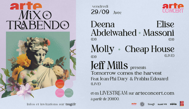 Arte Mix O Trabendo revient pour une nouvelle soirée le 29 septembre prochain à partir de 20h jusqu’à 5h du matin. Cette fois-ci, c’est Jeff Mills qui présentera sa création « Tomorrow Comes The Harvest » en featuring avec Jean-Phi Dary, Deena Abdelwahed, Elise Massoni, Molly et Cheap House. Grosse teuf en perspective !