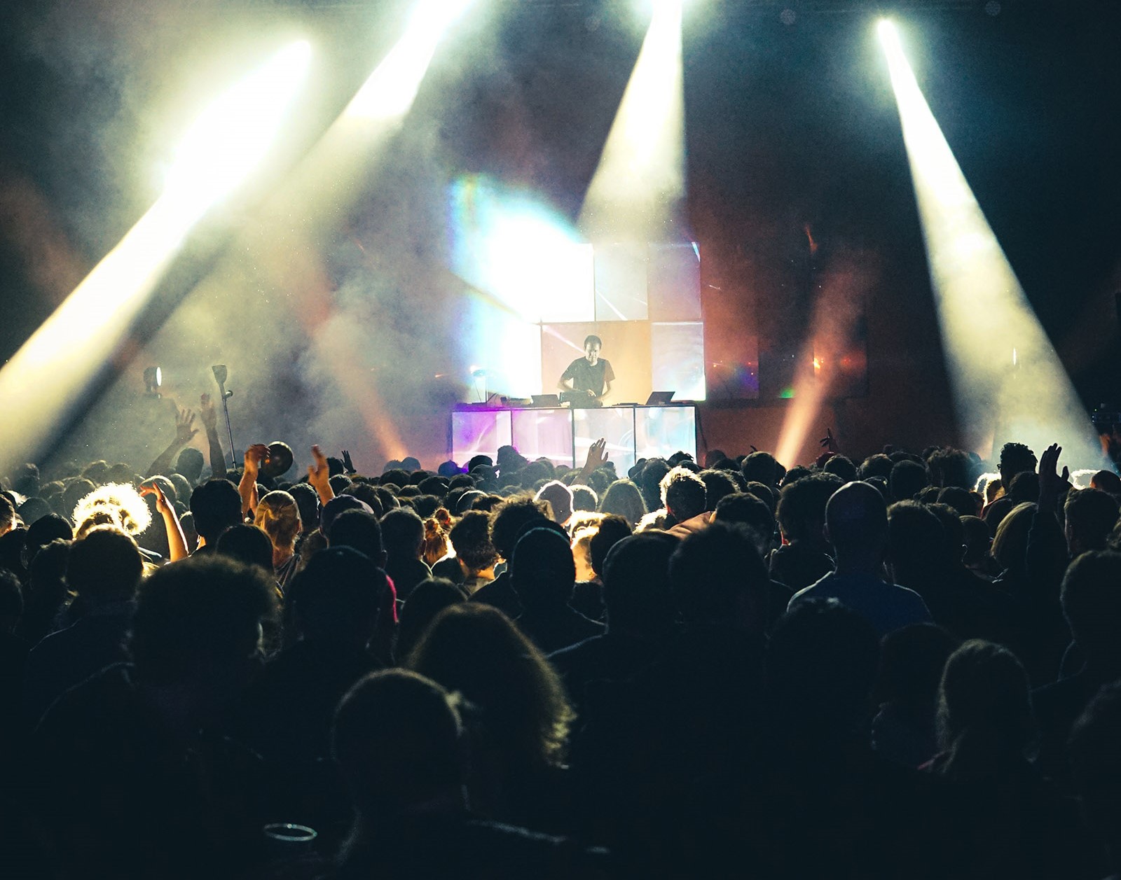 On continue notre valse et, au loin, les premiĂšres notes de « Bye Bye Macadam » nous signalent que Rone vient tout juste de dĂ©buter son set. PenchĂ© sur ses platines, l’artiste joue les magiciens, accompagnĂ© d’une scĂ©nographie impeccable. Vu l’heure tardive, il nous dĂ©balle juste ce qu’il faut : les corps se mettent en mouvement, les verres se remplissent, la salle se rĂ©chauffe et les bĂ©quilles se lĂšvent (oui oui). Un rapide dĂ©tour pour aller voir la Tunisienne Deena Abdelwahed avec laquelle on ne retrouve pas du tout la salle 400 telle qu’on l’avait quittĂ©e. Un contraste qui nous montre bien lĂ  toute la force du label : un panel d’artistes qui s’affranchit des barriĂšres de styles.