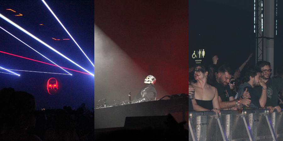 On déambule entre les  scènes, portés par les basses, immergés dans cette atmosphère étrange. Le lieu est bien pensé : les deux scènes sont disposées dos à dos, ce qui permet une immersion totale dans chaque ambiance, aucun son de l’autre scène ne vienne altérer l’expérience. Sur la scène hybride, Vladimir Cauchemar enflamme la foule tout en puissance sous son masque de squelette. On entre dans cette montée hallucinée où tout semble possible.