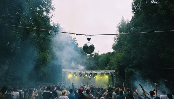 Enfin, une partie du Fort de Saint-Père seulement, une petite clairière, parfaitement aménagée avec des filets de protection pour délimiter la zone de fête, des boules à facettes accrochées dans les arbres et des petites lanternes chinoises pour égayer le tout. Le lieu a un petit côté berlinois – on pense au club ://about blank – et on trouve tous cela plutôt cool, voire carrément génial pour certains.