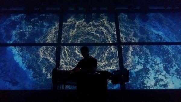 En un peu plus d’une heure Molécule nous offre un voyage sensationnel en pleine mer. Sa recette secrète ? Marier le bruit de la mer à celui de la techno. Il apparaît sur scène et commence à dompter les nombreuses machines analogiques qui l’entourent et qu’il utilisait également en pleine mer. Très vite, les images d’une mer agitée se succèdent sur les écrans disposés à 360°. On est plongé dans une grande tempête, la tôle se froisse et des éclairs jaillissent tout autour de nous tandis que « Rockall » aux accents acid résonne dans la salle. La Gaité Lyrique se transforme peu à peu en un chalutier insubmersible mais le morceau « 8 ZL 40 » installe une atmosphère presque apocalyptique. Va-t-on survivre à cette tempête ? A mi chemin entre l’ambient et la techno minimale, le capitaine Molecule a réussi à nous faire surmonter l’angoisse d’un naufrage en mer. Chapeau l’artiste !