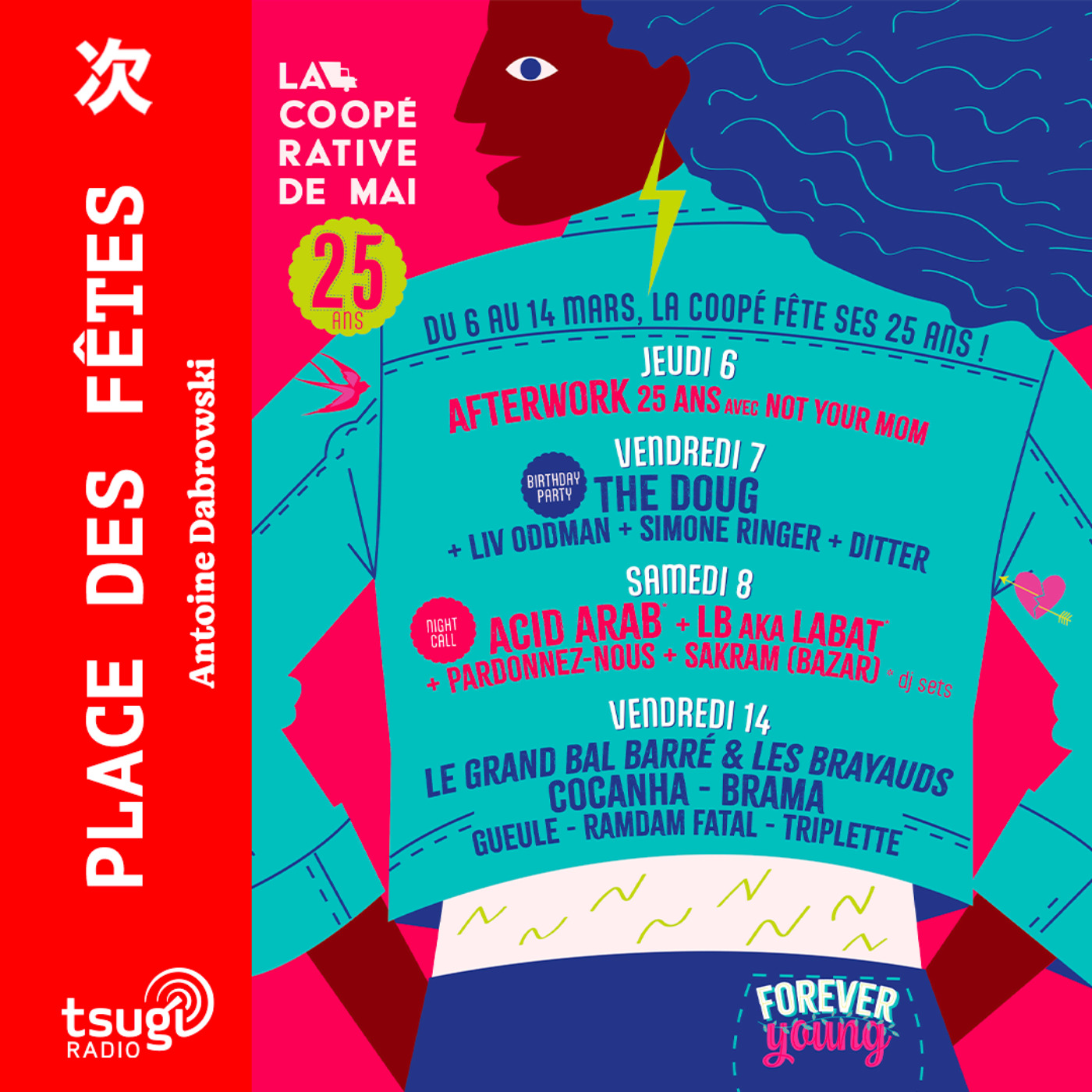 Après les vibes brésiliennes de notre résidente Rita Amoureux qui nous a envoyé son mix depuis Rio où elle passe quelques mois, et avant de retrouver tout à l’heure en direct Ultranoük et son invitée, la DJ Lux, une heure de nouveautés en direct dans Place des Fêtes et aussi, un anniversaire ! La Coopérative de Mai, la scène de musiques actuelles de Clermont-Ferrand fête ses 25 ans. Et oui, le 7 mars 2000, la salle a ouvert sur la place du 1er mai, place emblématique de la ville et trait d’union entre Clermont et Ferrand, en accueillant un concert des Rita Mitsouko. Cette année c’est l’Auvergnat The Doug, notamment, qui sera à l’affiche de cette soirée d’anniversaire où nous serons avec Tsugi Radio pour une émission spéciale avec aussi de Ditter, de Liv Oddman, et, clin d’œil à l’histoire de la coopé, Simone Ringer… Les 25 ans de la Coopé, on en parle tout à l’heure avec sa directrice, Sarah Schmitt. Plein de belles découvertes comme tous les jours sur Tsugi Radio, et aussi des nouveaux singles affolants comme Fun Times de la Canadienne Marie Davidson, Poté qui revient à la musique électronique et c’est fantastique ou encore la délicate pop électronique caribéenne de Dowdelin. Mais d’abord direction la Belgique avec mon coup de cœur du jour. Elle s’appelle Charles et elle sera en concert à FGO Barbara le 23 avril prochain.