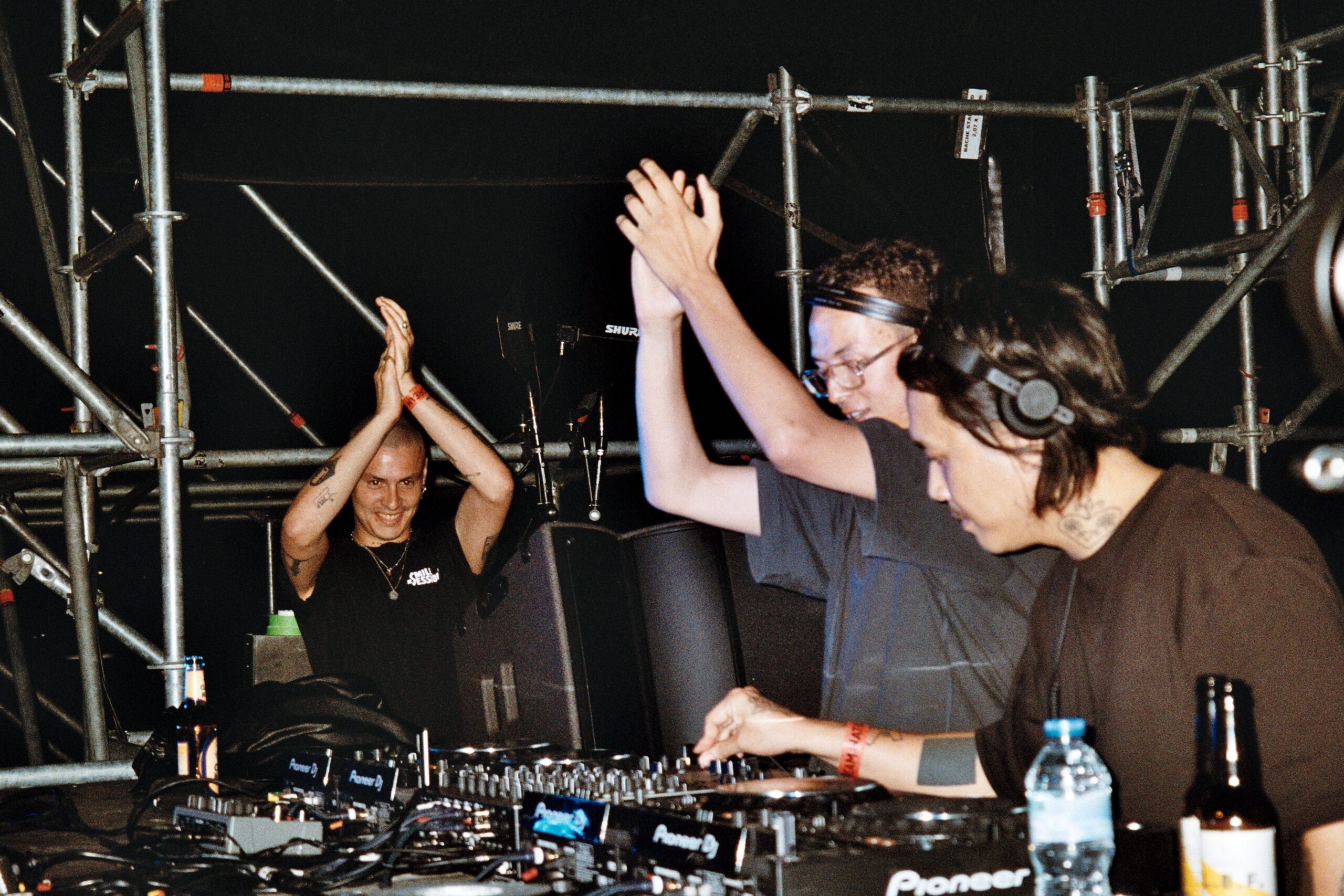 À peine le temps de s’essuyer, que Contrefaçon est venu brûler à nouveau un public toujours aussi réceptif. Profitons de ce moment pour le dire haut et fort : la scénographie nous a littéralement assommés – les stroboscopes en rafale piquaient nos yeux sur la scène dub, en fin de nuit. Il faut le dire, les références du VJing FEMUR,Rabbit Killerz etThe Hybrid Project n’ont pas fait les choses à moitié. Et tout particulièrement pour la prestation de Contrefaçon, à grands coups de memes d’Internet et d’images de manifs, style barricades en feu. « Ça fait du bien de pouvoir foutre la merde avec vous », conclut l’un des quatre membres du groupe, aux influences punk-rock, avant d’enchaîner sur le « Killing in the Name » de RATM, et de passer le remix de « Heads Will Roll » par Nia Archives. Les lights et la scénographie de fou furieux nous ont tout aussi régalés sur la scène dub, mêlées à une drum n bass qui découpe, aidée par des subs à rallonge.