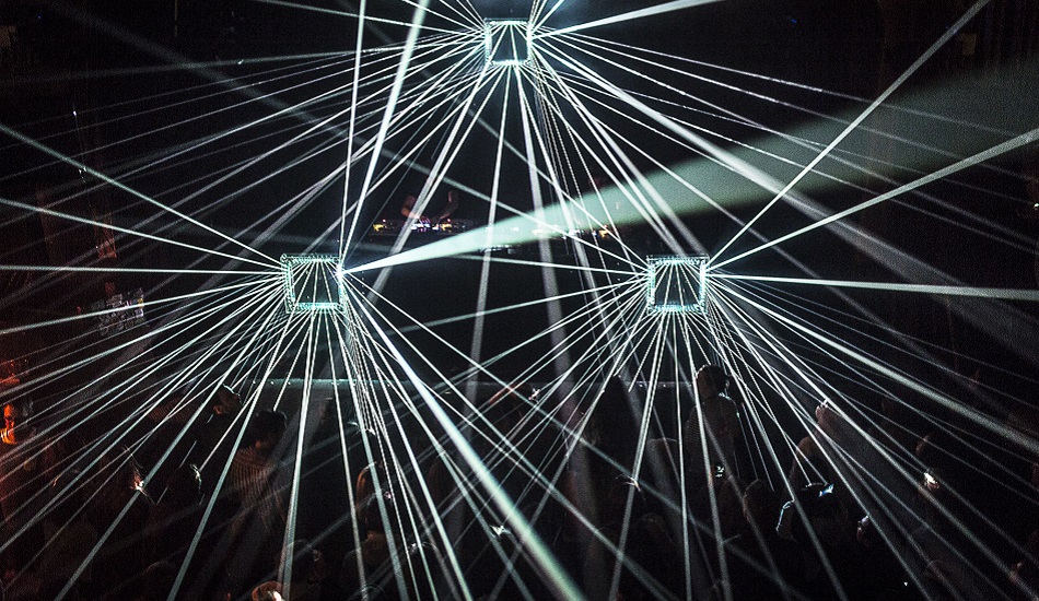 Les débuts seront difficiles comme le raconte Aurélien : “On a eu des gros moments de doute dès qu’on s’est lancé dans l’idée d’utiliser le laser pour un éclairage à 360°. La question de la sécurité est arrivée très vite. Nous travaillions dans l’incubateur du 104 à Paris, et ils nous disaient : ‘Vous êtes fous, si aujourd’hui il n’y a plus de lasers, c’est qu’il y a une raison.’” Persuadés d’une faille dans ces affirmations alarmistes, les trois ingénieurs vont se plonger inlassablement dans l’analyse des 200 pages de la norme du laser ou dans des thèses répétant ad lib la dangerosité de l’objet. Jusqu’à ce que jaillisse enfin la lumière : “Faire tourner les lasers à 360° permet un mouvement continu que l’on peut effectuer à une très grande vitesse. Le faisceau circule tellement vite dans l’oeil qu’il n’a pas le temps d’absorber l’énergie. C’est la même chose avec la flamme d’un briquet. Si on passe son doigt très vite sur la flamme, on ne se brûle pas et bien c’est le même principe avec l’oeil.” Nous sommes alors en 2013, et rien ne pourra plus les arrêter. Sous forme de pyramide et de carré, pouvant être disposé à l’unité ou en nombres dans tous les espaces d’une salle (du sol au plafond en passant par les murs), les prototypes de leur produit M-Laser sont testés par beaucoup de collectifs (Berlinons Paris, Le Phonographe…) de la nouvelle scène techno alors en ébullition dans le grand Paris.