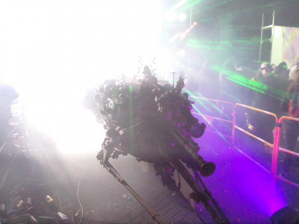 Par ailleurs, c’est vrai, on notait un effort particulier sur la décoration des sound-systems : vaisseau spatial, statues de l’île de Pâques, horlogerie… Les tentures noires et blanches avec signes tribaux d’antan ont laissé la place à des espaces plus colorés, les camions récupérés à l’armée remplacés par des véhicules de location. Les artistes/DJ’s ne se cachent plus, certains jouant même sur des scènes en hauteur. Et puis, les inévitables et innombrables stands de merguez/frites sans parler des vendeurs de textiles et autres accessoires pour teufeurs, donnaient l’étrange impression de se trouver plus dans une foire/fête foraine que dans un remake de Mad Max sous acide comme jadis. Sur la fin, avec la déresponsabilisation des participants, induite par l’organisation étatique, le lieu ressemblait même carrément à une vaste décharge.