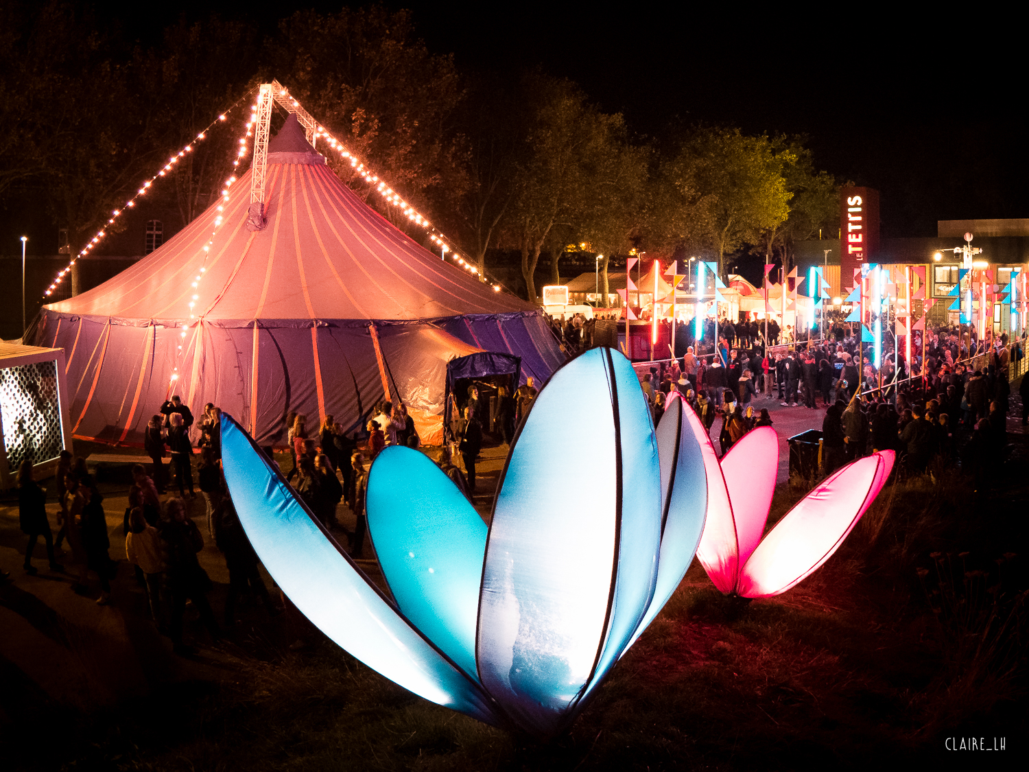Premiers pas sur le site et premiĂšres impressions Ă  chaud (ou plutĂŽt Ă  froid au vu de la tempĂ©rature extĂ©rieure) : le Ouest Park est un festival, comme le veut la formule, « à taille humaine ». On se rend compte tout de suite que, pour une fois, on sera Ă©pargnĂ© des interminables files d’attente qui caractĂ©risent gĂ©nĂ©ralement ce type d’évĂ©nement. On dĂ©couvre d’emblĂ©e trois scĂšnes : les deux premiĂšres sont nichĂ©es sous un chapiteau. On apprend d’ailleurs que la tempĂȘte de mercredi soir a bien failli mettre un terme au festival. La partie basse du grand chapiteau s’est dĂ©tachĂ©e, ce qui a fragilisĂ© l’ensemble de la structure. Une heure de plus et c’est la tente entiĂšre qui s’envolait. Soupir de soulagement de la part des salariĂ©s du festival et des 200 bĂ©nĂ©voles qui travaillent d’arrache pied, pour certains depuis quelques heures, pour d’autres, plusieurs mois, voire 365 jours par an. La troisiĂšme scĂšne est, elle, situĂ©e Ă  l’intĂ©rieure du Tetris, la salle de musiques actuelles de la ville.