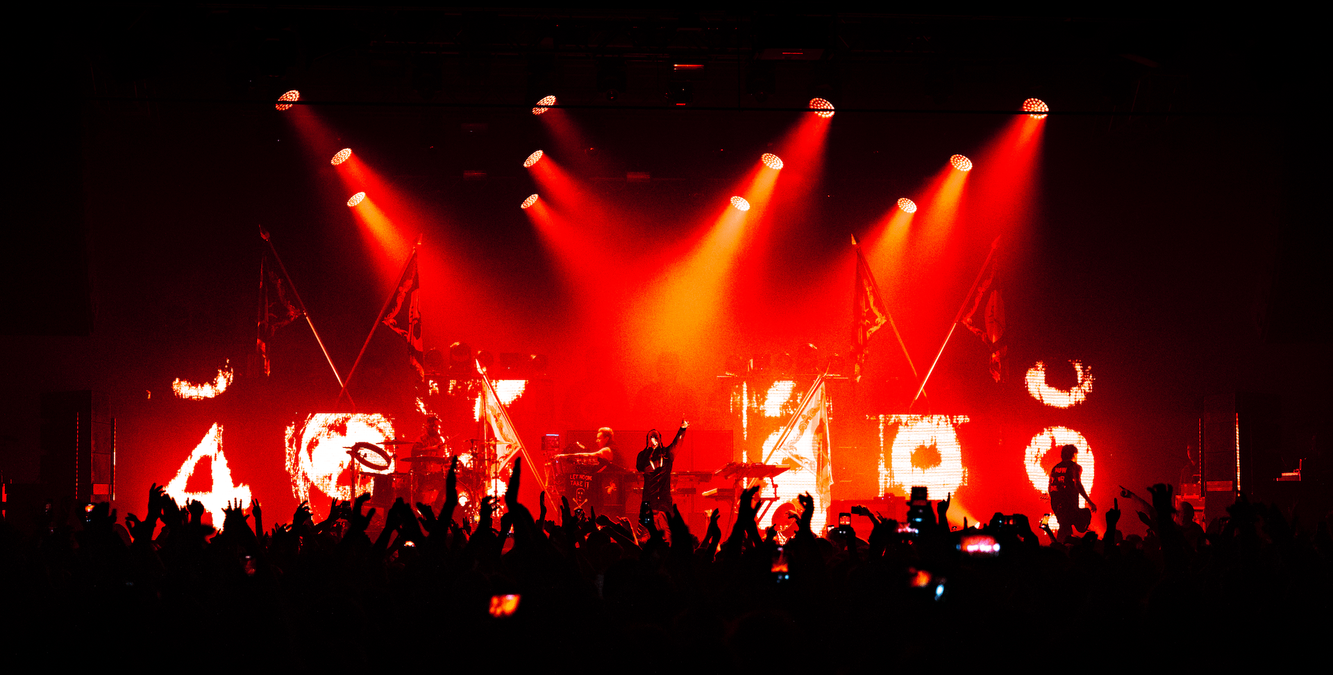 N’ayant sorti aucun album depuis No Tourists en 2018, The Prodigy ne peut qu’être contraint à réviser ses classiques. C’est en quelque sorte prévisible. Mais de là à sentir le réchauffé… pas vraiment. Le public est enfin bouillant, et ça se sent (on parle transpiration). La foule fout littéralement le bordel : sauts les uns sur les autres, coups de coude, jetés de gobelets et de bouteilles d’eau… On ne respire plus et on ne sait plus où donner de l’oeil. Car avis aux épileptiques : ce show n’est pas forcément fait pour vous. Du deuxième morceau « Omen » à « Smack My Bitch Up« , les lasers multicolores se baladent, se croisent, clignotent et s’étendent depuis la grande statue posée sur la scène. C’est sans compter les lumières d’ambiances déjà présentes, ainsi que les gyrophares faisant généralement comprendre que le danger n’est jamais loin.