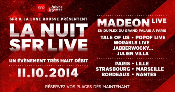 Le 11 octobre prochain, la Nuit SFR investira le Grand Palais et cinq villes de France. C’est à cette occasion que la marque propose un concours de remixes avec, bien évidemment, plein de bonnes choses à gagner. Pour ce faire, il vous faudra remixer la petite boucle SFR que l’on entend au début et à la fin de la pub’… Ça ne vous dit rien ?