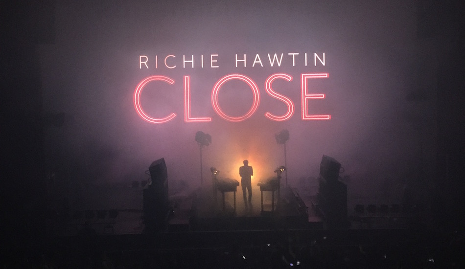 Depuis Laurent Garnier en 1998, on ne compte plus les artistes issus des musiques électroniques à s’être produits à l’Olympia ; il n’empêche, la présence de l’un d’entre eux dans le temple de la chanson française constitue encore un petit événement, signe que la performance scénique à venir ne sera pas ordinaire. Devant l’entrée de la célèbre salle parisienne, immanquablement, ils sont nombreux à immortaliser les lettres rouges annonçant la présence de Richie Hawtin. A l’intérieur, si la salle n’affiche pas complet, elle est copieusement garnie d’un public assez disparate, allant de la vingtaine à la cinquantaine, reflet de la longévité du Canadien, aux platines depuis les années 90, mais jamais dépassé par le temps. Dans cette course, Richie Hawtin essaie toujours d’avoir une longueur d’avance, et la scène semble être son nouveau lièvre. Présenté pour la première fois l’an dernier à Coachella, CLOSE a ainsi pour ambition d’abolir la frontière entre live et DJ set, et de faire évoluer le rapport à la scène des artistes techno. On les soupçonne de jouer des sets préenregistrés ? Alors place à la transparence.