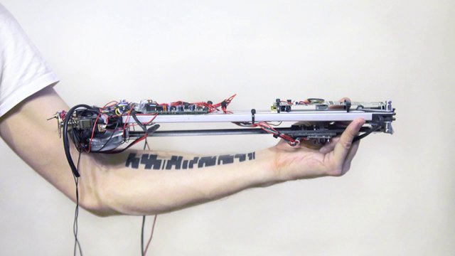 Une partition qui va de pair avec une machine de sa composition, le tout formant un projet portant le joli nom de Reading My Body. Et a priori, ça marche aussi avec la tasse à café que vous vous êtes tatoué la semaine dernière. Techniquement, ça se passe comment ? Un détecteur optique, un contrôleur manuel, une manette de Wii bidouillée… Le simplicité même. Et le résultat sonore parle de lui-même : skrruiiiiuuiuuu….