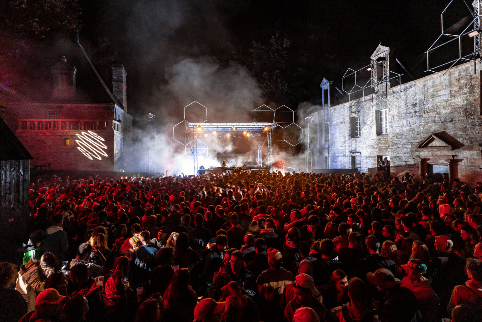 Dans le manoir de Keroual, on trouve aussi La Cour. Un décor enchanteur et folklorique niché entre les pierres d’une bâtisse vieille de cinq siècles. On nous dit à l’oreillette que le closing du dimanche face au levé du soleil est épique. Le premier artiste qui va y performer est LSDXOXO avec un set percussif flirtant entre morceaux pop, ghetto house et hardcore. Ça promet !